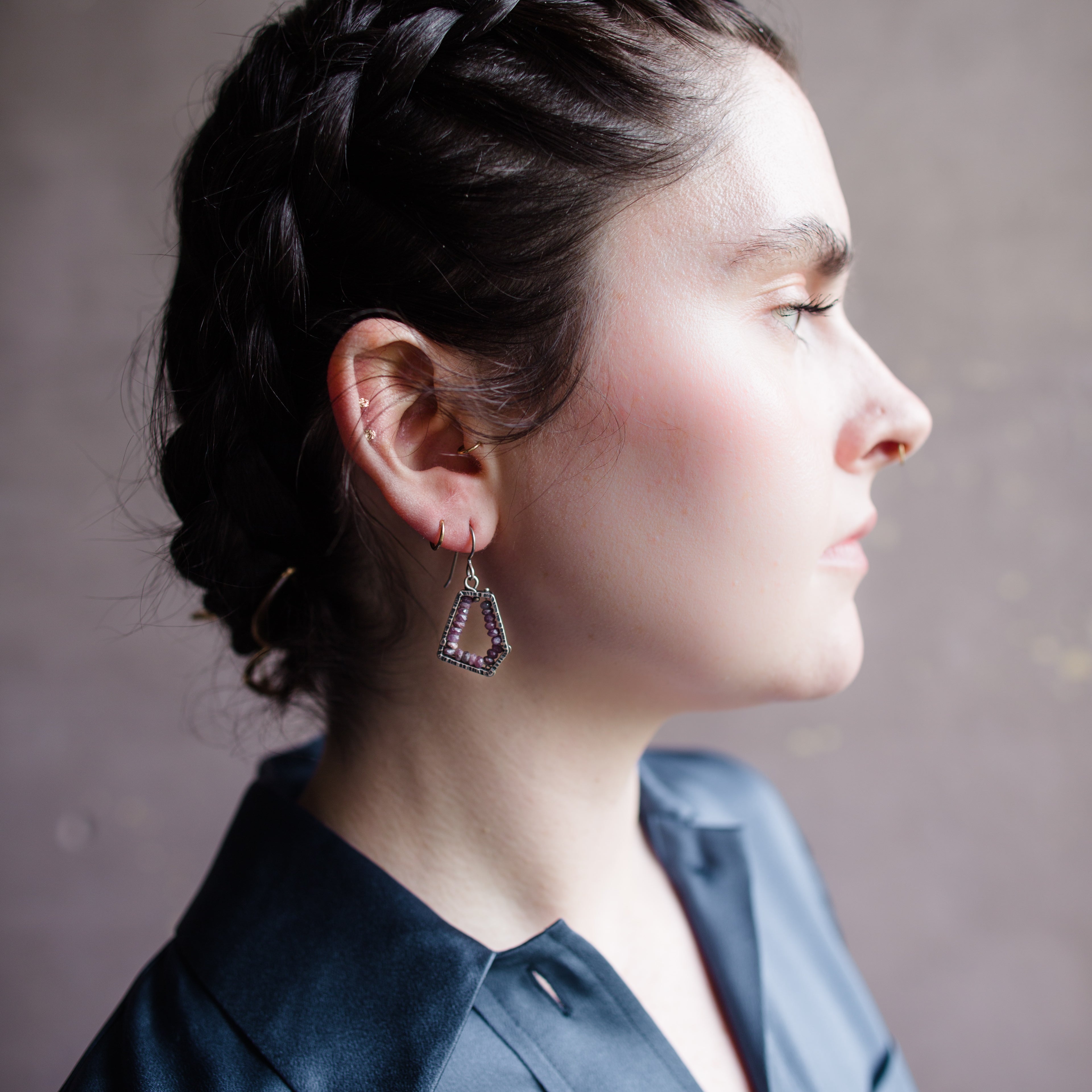 Erica Bailey Spinel Hexagon Geode Earrings (Small)