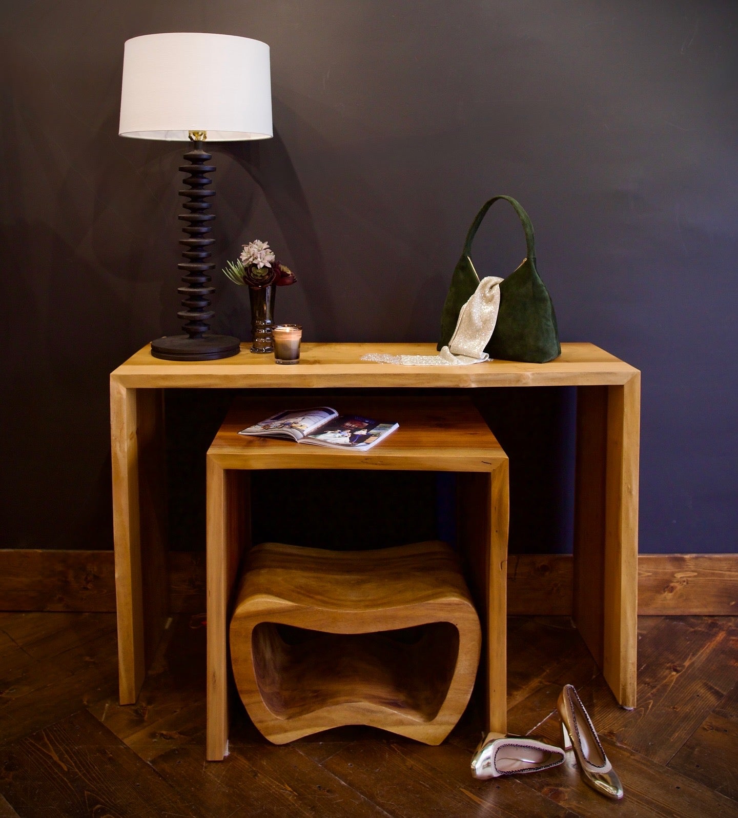 Our furniture is a small collection of rustic modern pieces from some of Margo’s favorite companies that we offer available for local pick up only as well as some one of a kind locally made furniture.