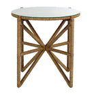 With an angular, X base frame suuporting a circular top, the seagrass rope wrapped Side Table offers elegant form with textural appeal. Small wooden caps at the top of each leg and a tempered glass top finish off this natural accent piece. Seagrass is a natural material and may present subtle differences in color or texture.