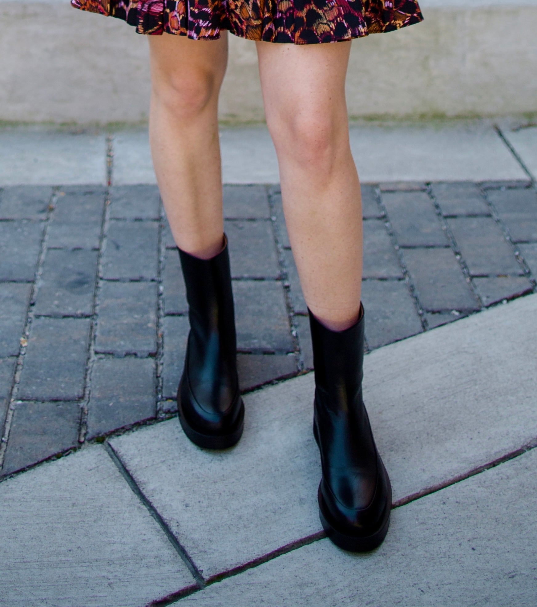The Marion Boot by Mansur Gavriel features a round toe with back zip closure and a chunky sole.